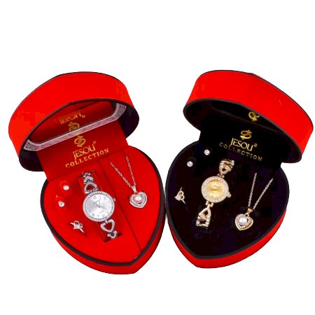 4 in 1 Female Jewelry Set Quartz Watch Crystal Design Necklace Earrings ring For Lady's Mom/Sister/Friends Gift Box